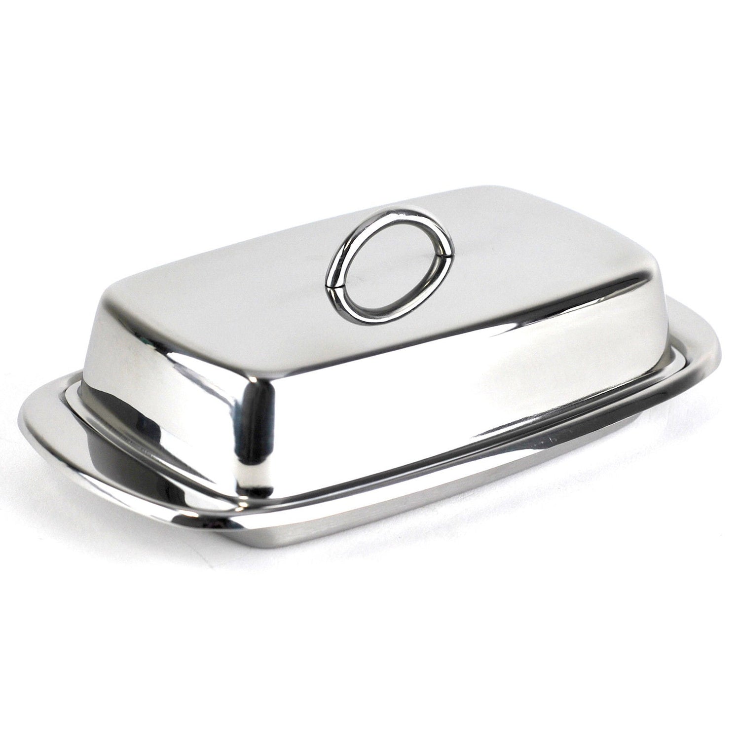 The classic retro style of our covered butter dish is reminiscent of the 1950s and also provides refrigerator to table convenience. Holds 2 sticks of butter, or one block of cream cheese.