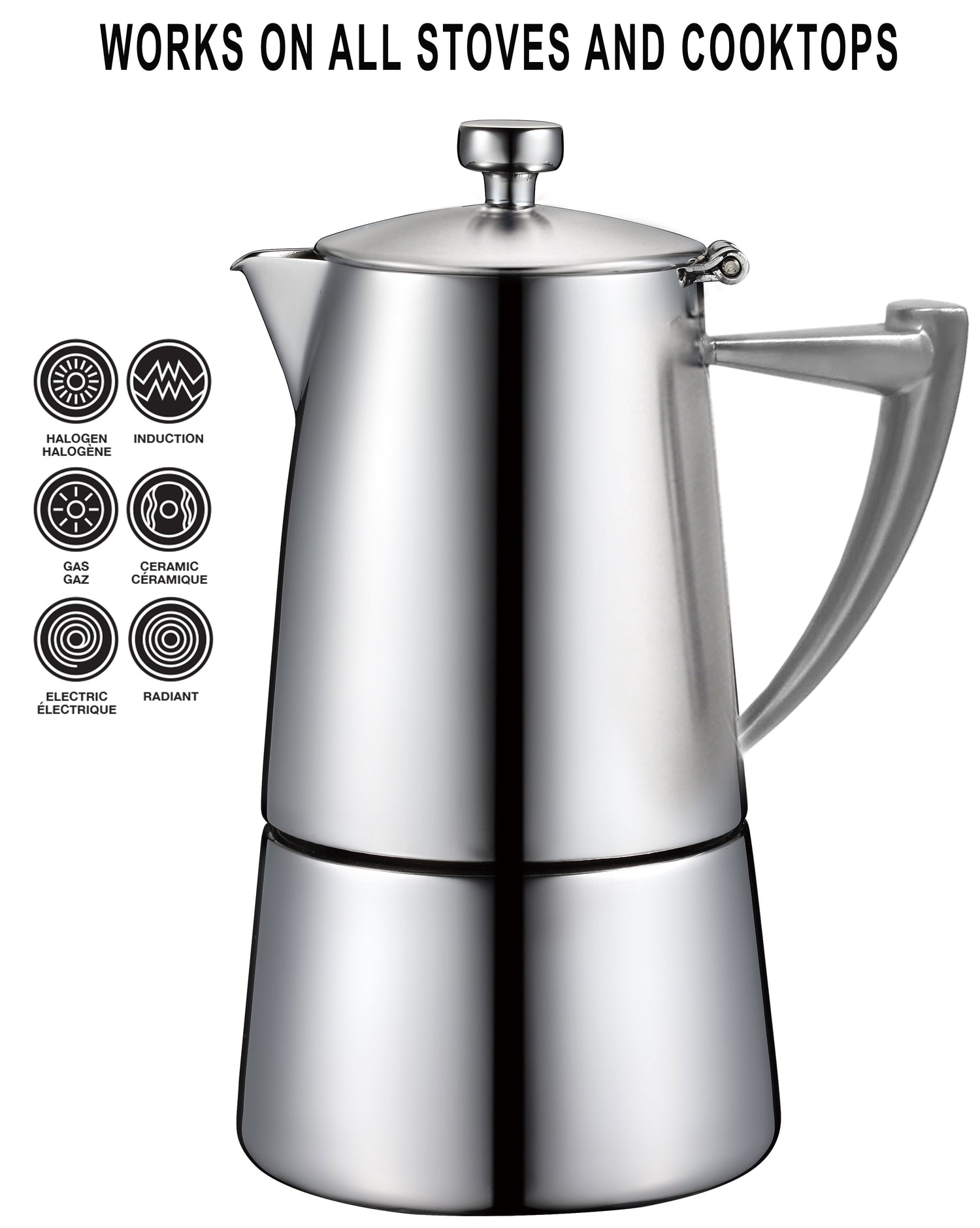 Cuisinox Roma Satin Stainless Steel Induction Stovetop Moka Espresso Coffee Maker