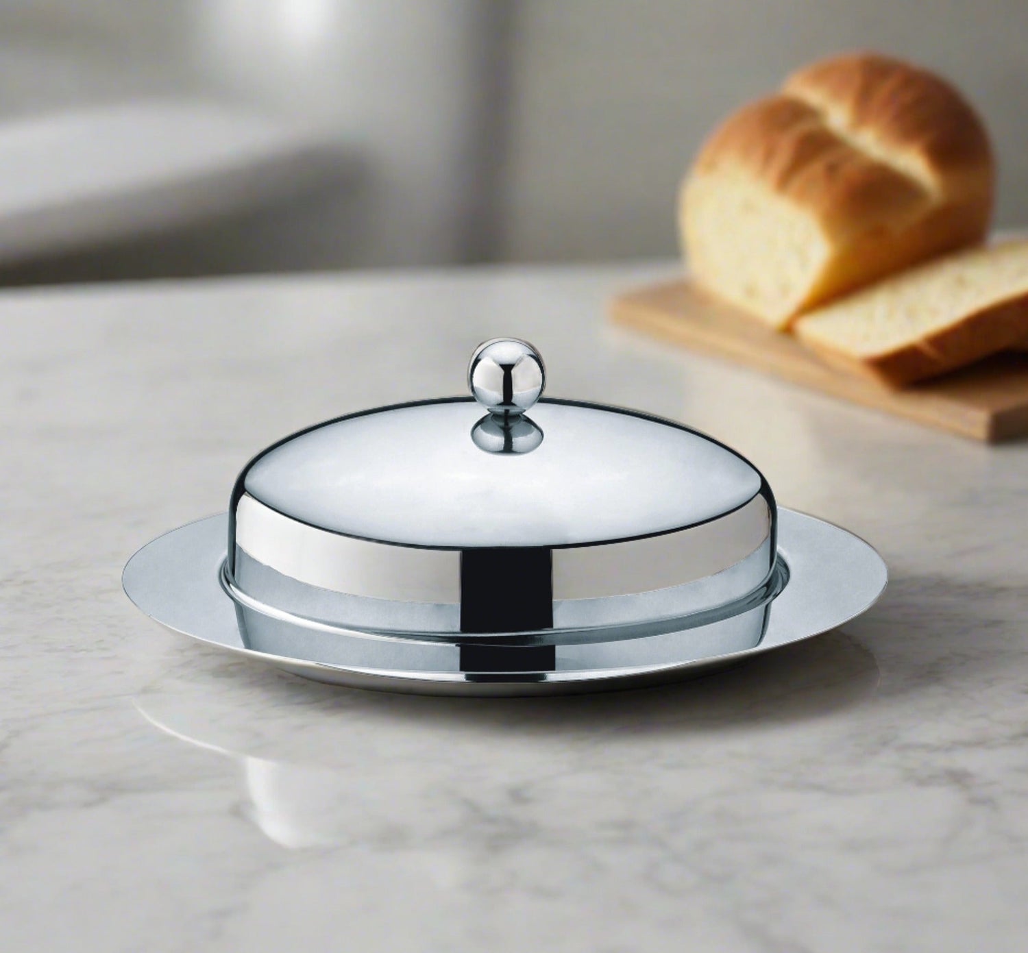 Keep butter cool and fresh with a butter dish made of high quality stainless steel in a rich glossy mirror finish.