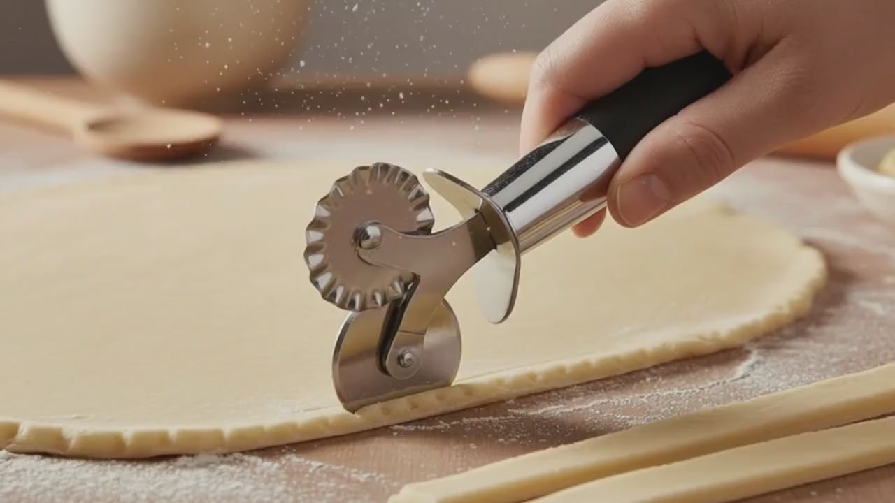 Pastry wheel in stainless steel with a comfortable ergonomic handle.