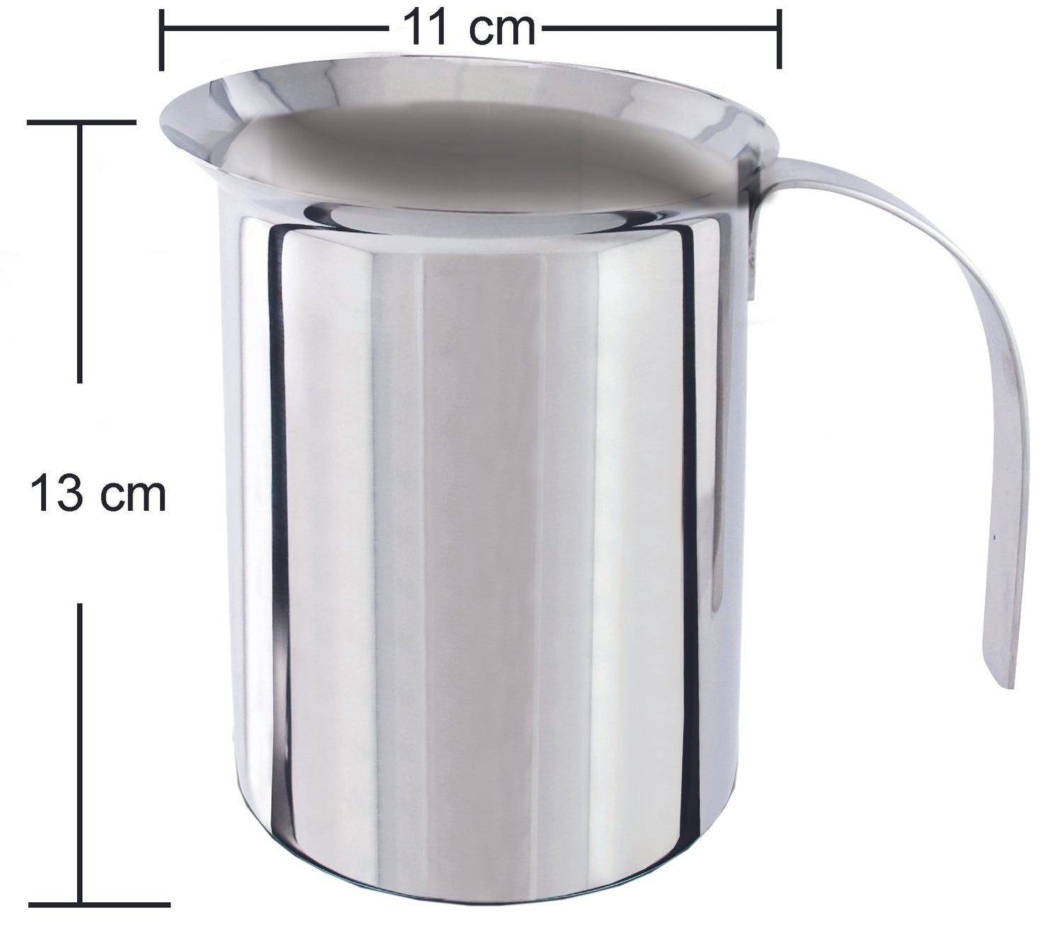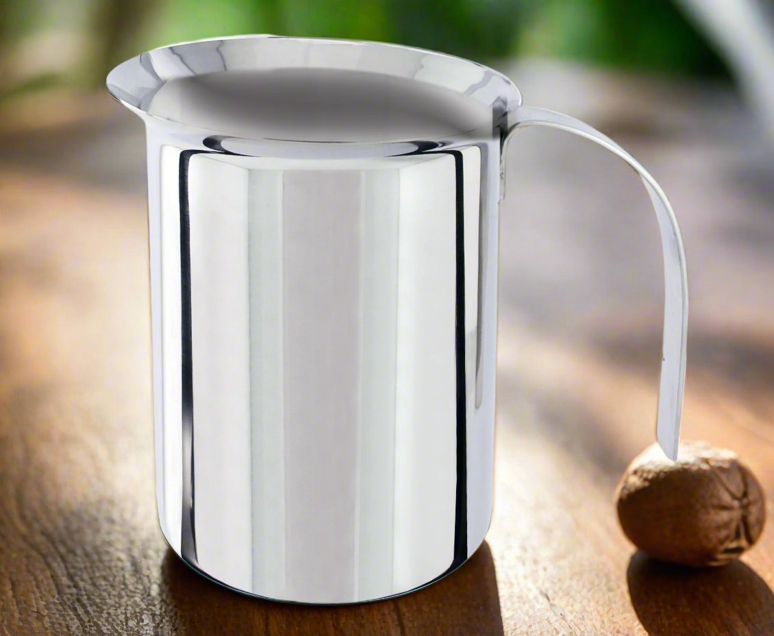 This premium quality stainless steel frothing pitcher is ideal for home and professional use. Made from durable stainless steel with a convenient flared lip for easy pouring from any angle. Can also be used as a unique milk pitcher when serving coffee or tea.